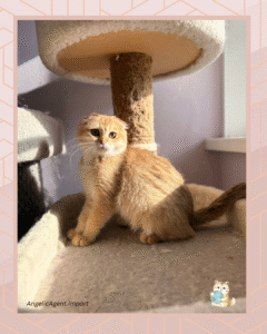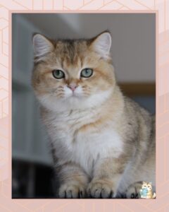 BRI betina ini hadir dengan warna ay12 (blue golden shell) yang sangat elegan dan jarang. Tipping keemasan yang halus di atas dasar biru lembut membuat tampilannya mewah, bersih, dan premium—salah satu varian golden paling dicari dalam dunia British Shorthair.